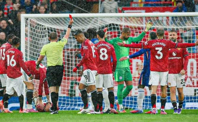 在曼联2-1逆转切尔西的焦点战中,桑切斯冲出禁区放倒布伦特福德借将姆伯莫,主裁判以"破坏明显得分机会"为由出示红牌,引发赛后热议。